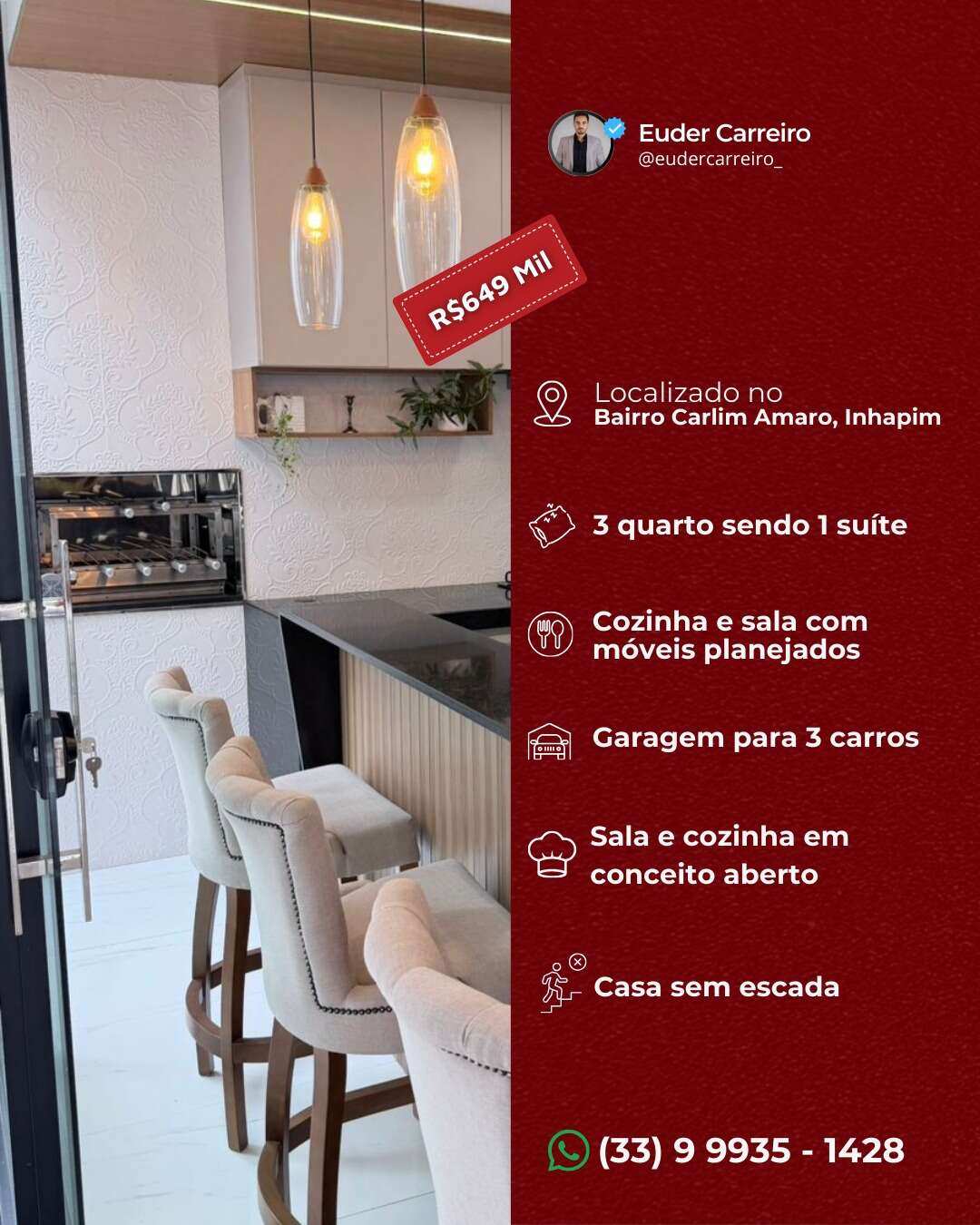 Exclusivo Vendido Casa com 3 quartos, 170m², à venda em Inhapim, Vila Real CA0012 Casa com 3 quartos, 170m², à venda em Inhapim, Vila Real Venda R$ 549.000,00 Vila Real, Inhapim 03 02 170 m² 03 Ver imóvel