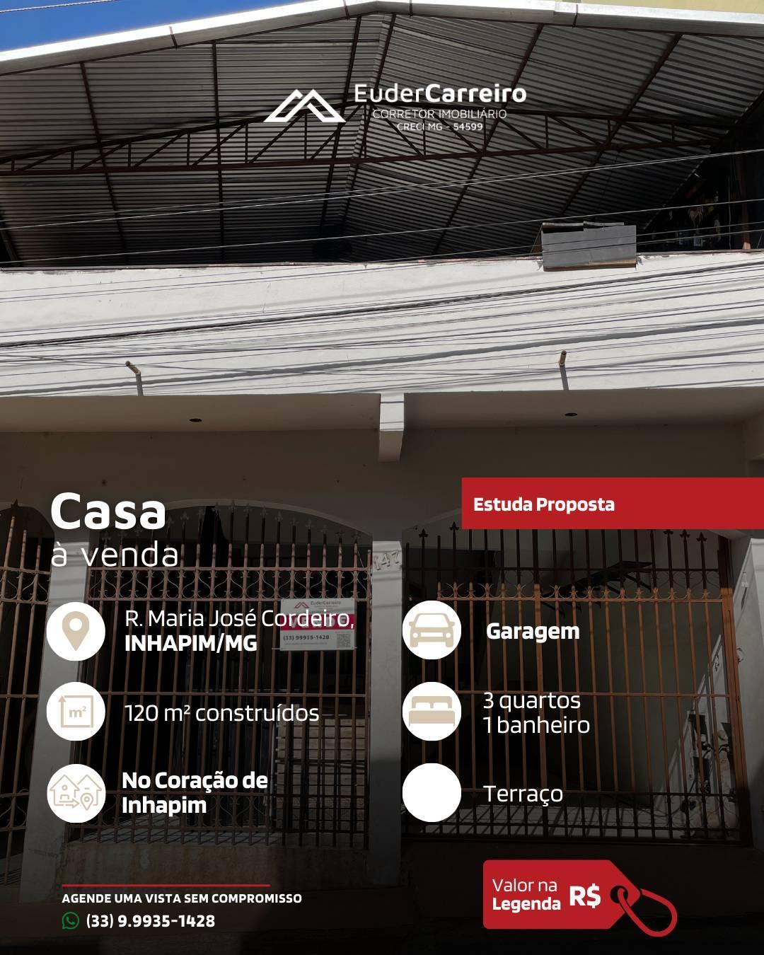 Casa com 3 quartos, 120m², à venda em Inhapim, Centro