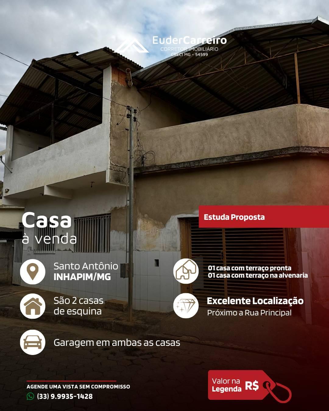 Duas Casas, à venda em Inhapim, Santo Antônio